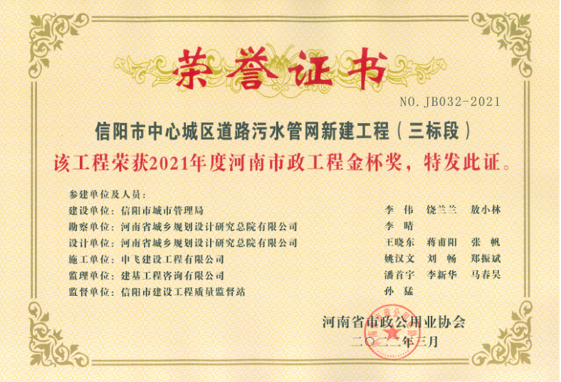- [04-12]申飛建工再獲“省先進施工企業”、 “市政金杯獎”等多項榮譽